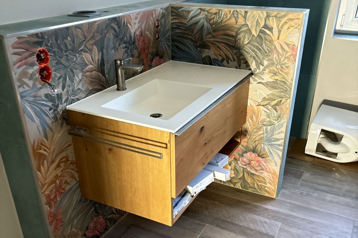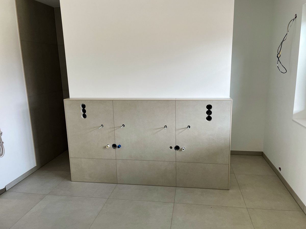 Fliesenarbeiten abgeschlossen, Vorbereitung für die Sanitärendmontage erfolgt