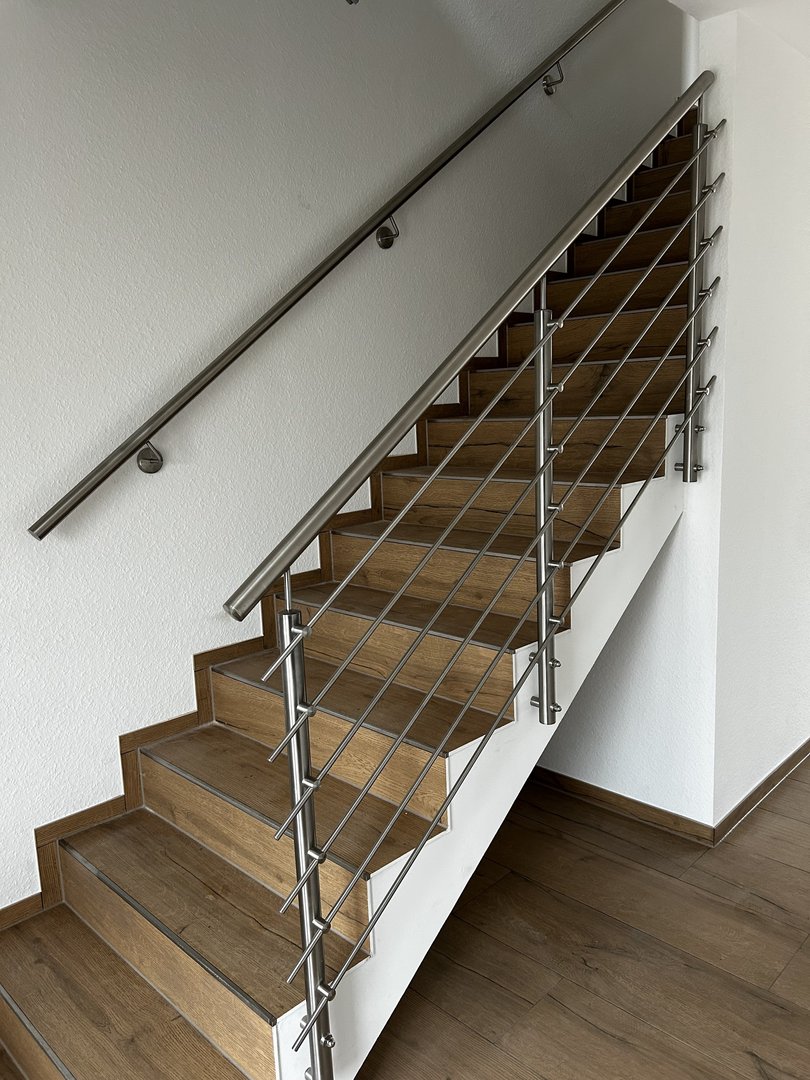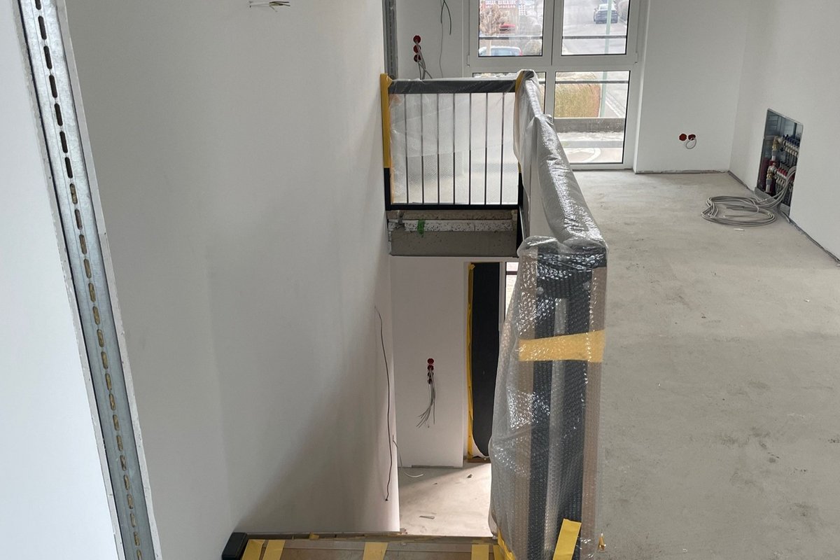 Freitragende HPL-Treppe samt Geländer eingebaut, Fliesen- und Malerarbeiten abgeschlossen