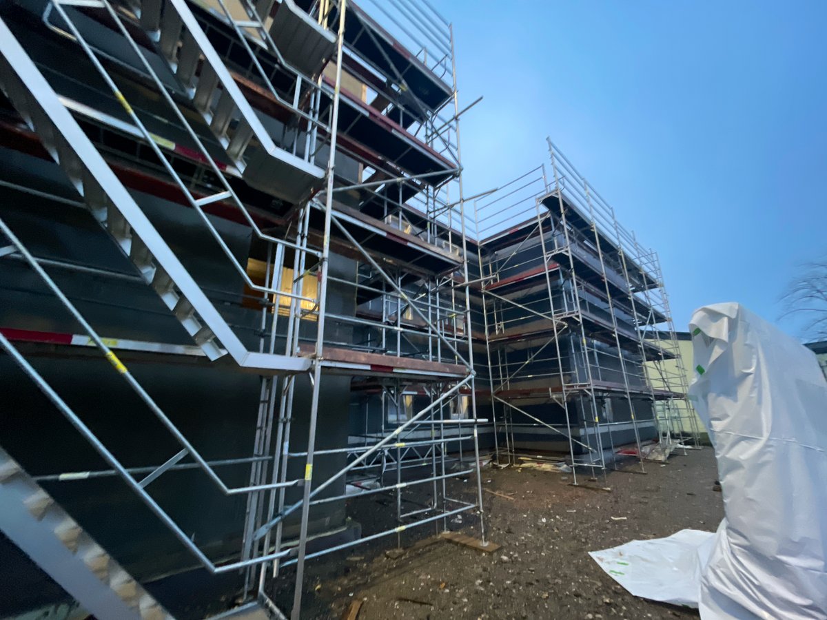 Fertigstellung der Fassadenarbeiten, Gerüst kann abgebaut werden