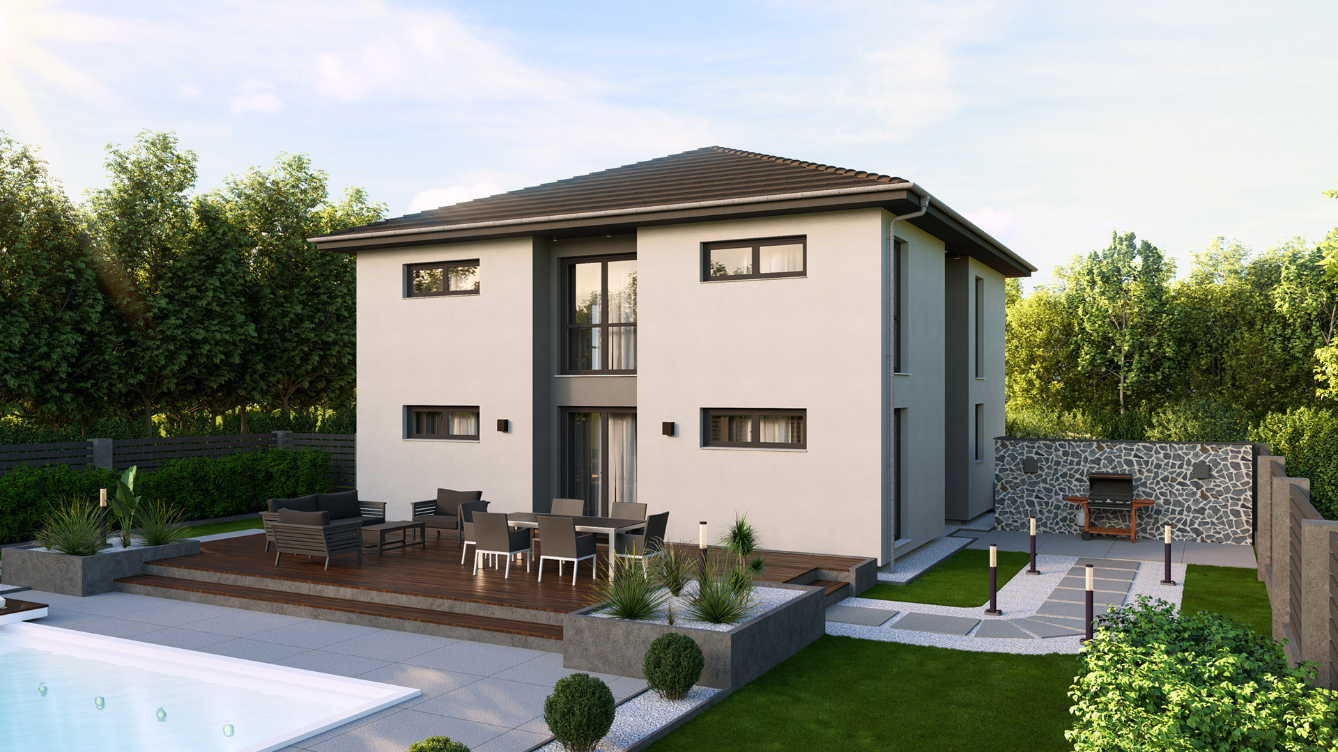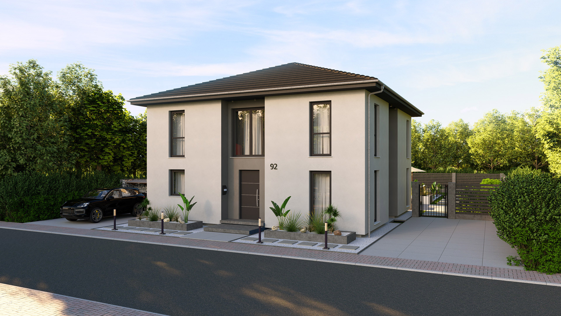Großzügiges Wohnkonzept. Moderne Architektur. Die Stadtvilla bietet auf zwei Etagen ausreichend Platz zum Leben, Arbeiten und Wohlfühlen. Bodentiefe Fenster sorgen im großen, offenen Ess