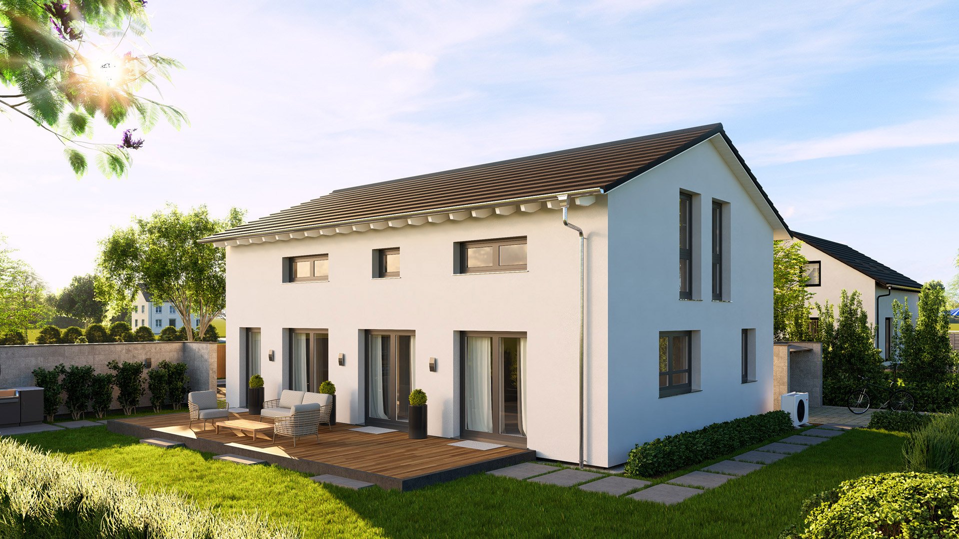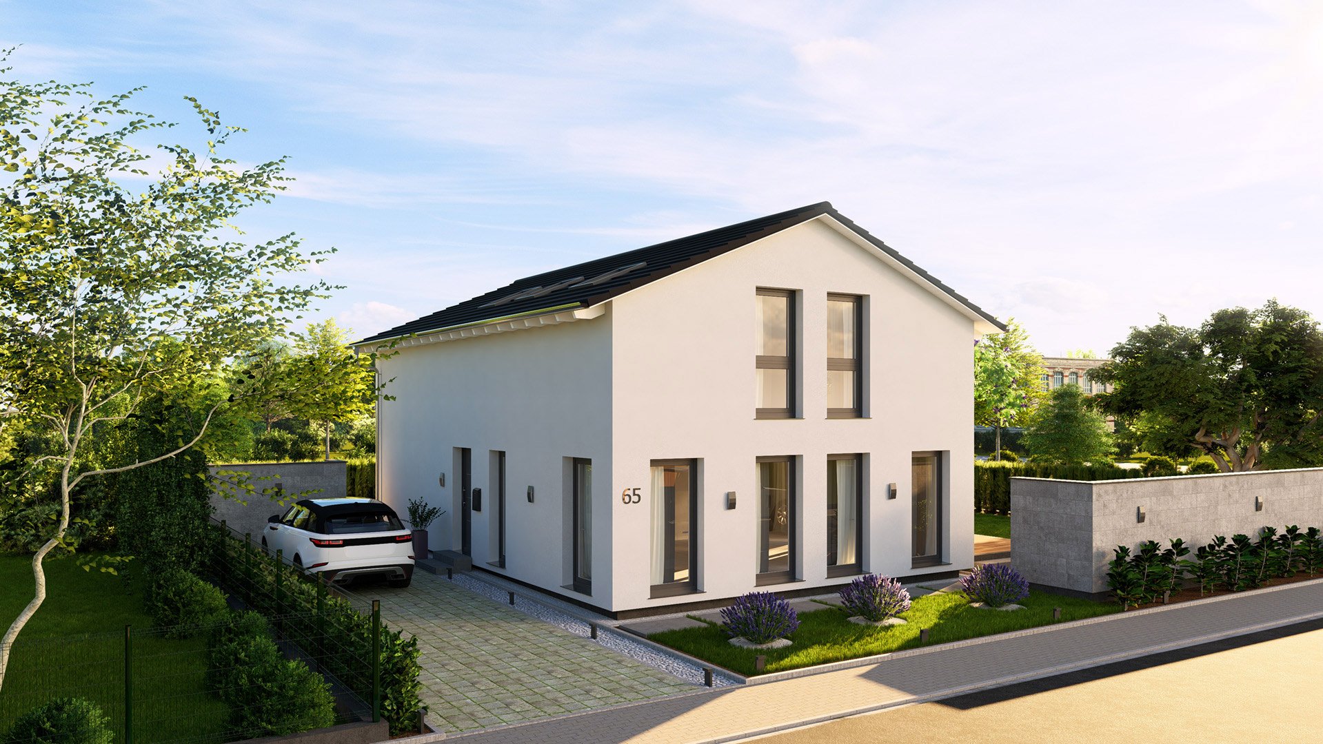 Dieses Einfamilienhaus ist eine moderne Wohnlösung mit kompakten Außenmaßen und großzügig gestalteten Innenräumen. Ein lichtdurchfluteter offener Bereich, der Kochen, Essen und Wohnen kombiniert, bildet das Herzstück des Hauses und bietet ausreichend Platz für gemeinsame Stunden mit Familie und Freunden. Ein Gäste-Duschbad im Erdgeschoss sorgt für praktischen Komfort. Das Elternschlafzimmer im Dachgeschoss besticht durch seine Ankleide und das angrenzende große Badezimmer, das zum Entspannen einlädt. Ein gemütliches Zuhause mit zwei Kinderzimmern und eigenem Duschbad, das Komfort und Funktionalität vereint.